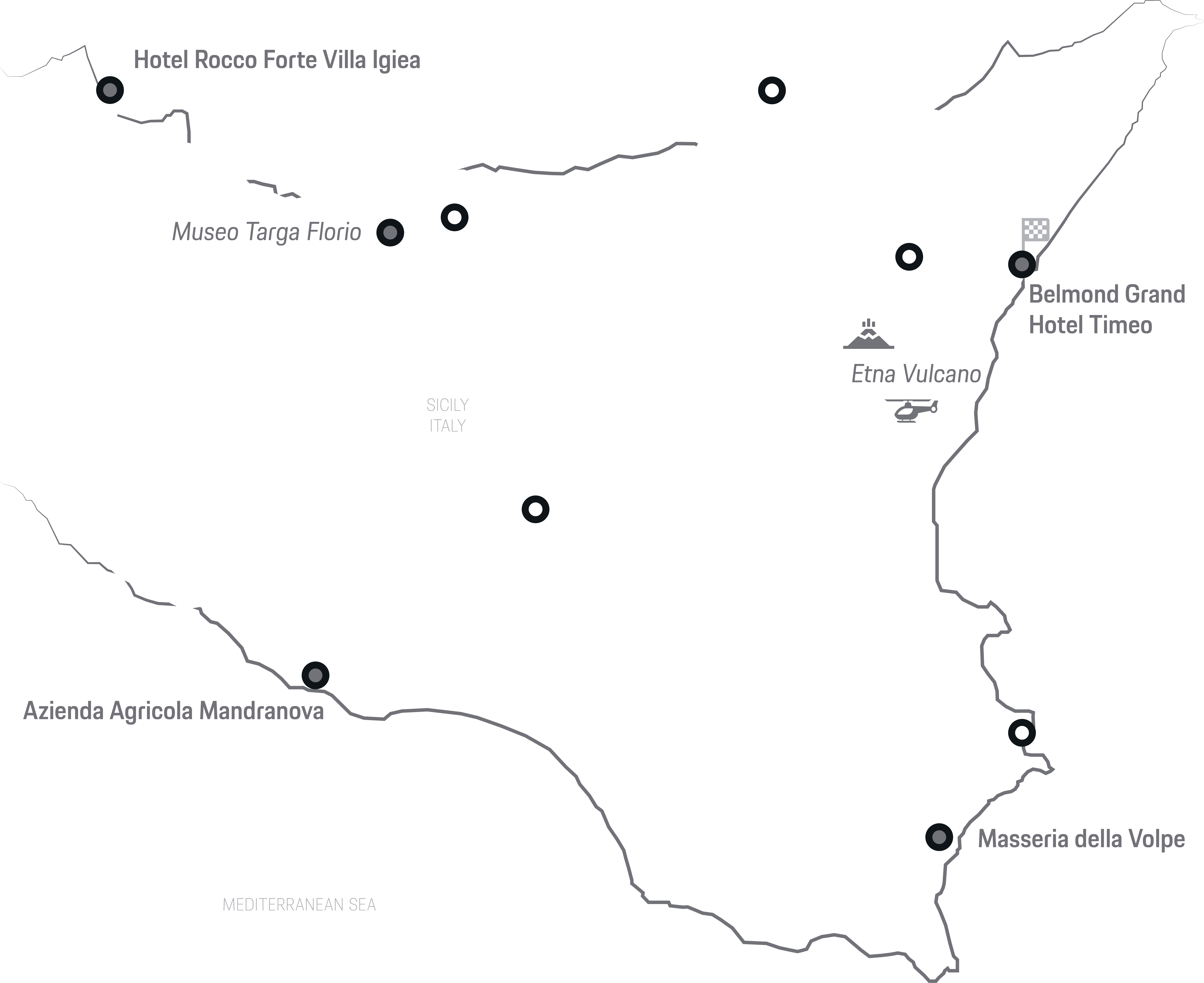 Anticipation for the days ahead will reach its peak during the drivers’ briefing and welcome drink. A dinner in the outstanding hotel restaurant will round off your day perfectly. And that is just the beginning of an entire series of Sicilian moments to enjoy.